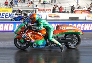 Two-time defending Orient Express Pro Street champ Rodney Williford got his groove back at The Rock and is looking to bring his winning momentum to MIR and make a move in the points standings. But he’ll have to get past the MPH record-holding, DME Racing Hayabusa of two-time winner Joey Gladstone by day’s end to claim the win.