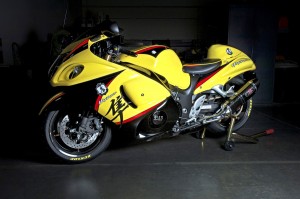James Stewart has signed a multi-year contract with Yoshimura Suzuki Racing and will be competing for both Motocross and Supercross championships aboard the Yoshimura Suzuki RM-Z450. As a ‘Welcome to Suzuki’ gift, American Suzuki Motor Corp. presented James with this custom, one of a kind, Yoshimura-built Hayabusa during the 2013 Suzuki Dealer Convention at the Rio Hotel in Las Vegas today. In addition to custom paint and graphics sporting Stewart’s JS7 logo, the bike has also been outfitted with a gorgeous pair of BST carbon fiber wheels, with ceramic bearings, provided by Brock’s Performance. A Brock’s offset top clamp and window links lower the chassis to finish off its ‘street-prowler’ stance. The JS7 Custom Busa is scheduled to display in the American Suzuki/Yoshimura R&D booth during select Progressive International Motorcycle Shows.