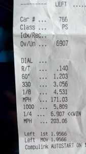 Schnitz’ 1/8 mile numbers were 4.531 seconds at 171.03 MPH – a time that would have put him in the top half of the Pro Mod field at the event.