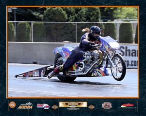 We appreciate our sponsors: Hawaya Racing, Bates Leathers, Engineered Performance Tooling, Beene’s Baggers, Conway Collision and Superior Interiors. Thanks to Johnny Vickers and Steve Vickers of Hawaya Racing for building this wonderful bike and to Leanne Purvis for taking us in and taking care of us at the track. We also want to thank Joey Sternotti for his advice, coaching and generous help at the races. Thanks to Rose Sternotti for her continued encouragement. Hats off to the passionate Nitro Harley drag racing fans who come out and support our wonderful sport!