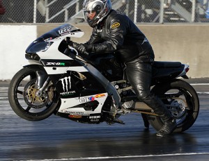 Riding Barry Purnell’s stealthy ZX9, Richard Gadson took out new FBR Shop 5.60 champion Marion Ford in the final of that class. Gadson had an .012 light on the streetbike.
