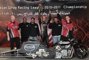 Nine short months later, 2009 NHRA Pro Stock Motorcycle Champion Matt Smith piloted his Pro Extreme “Drag Bagger” to victory at the Qatar Racing Club (QRC). This was one for the history books as it was the first win of the Pro Extreme Motorcycle class by a V-Twin ever!