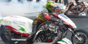 Nitro Harley Drag racer, Tommy Grimes competed with the AHDRA’s season opening event at Orlando Speedworld, Bithlo, FL. Riding in the Screamin’ Eagle Top Fuel field, Grimes powered his way to the finals against Doug Horne, only to go home with a runner up after tire spin mid track slowed his pace.