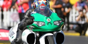 Second year NHRA Mello Yello Pro Stock Motorcycle racer John Hall has established points paying consistency, going to the semifinals this past weekend at the Summit Racing Equipment NHRA Nationals in Norwalk, Ohio. Add in his recent win at the inaugural New England Nationals in New Hampshire, and you’ve got a breakout season for Hall—a Connecticut real estate investor with a long history of racing no-bar bikes in the former AMA/Prostar series.
