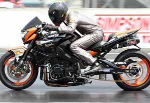 The Crazy 8s 8.88 index class was won by teenager Kyron Drake, who won when former Real Street champ Keith Thompson stayed glued to the tree. Thompson fried the clutches out in his GSXR getting that far and couldn’t go any further. “Fearsome” Andy Baumbach won both the Crazy 8s and Top Sportsman championships, only the second racer to win two championships in one season after Ronnie Procopio pulled off the double in 2008.