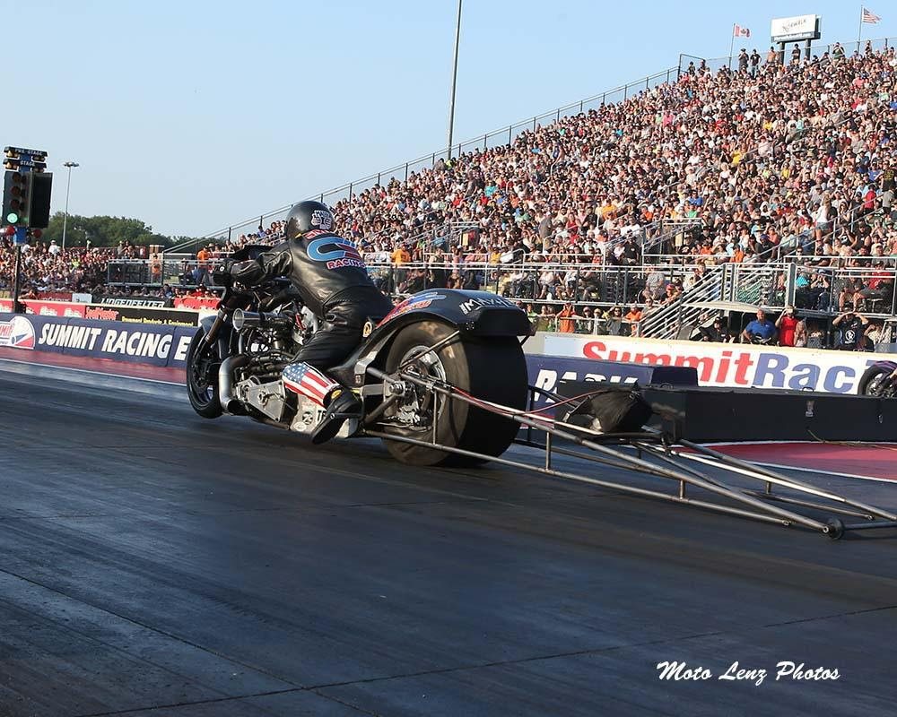 Top Fuel Harley-Davidson Motorcycle riders tackled high speeds on two wheels, and when everything was said and done, Chris Smith secured the win with a 6.96 over Tii Tharpe’s 7.49.