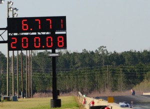 Two-time NHRA Full Throttle champion, Ed Krawiec, unofficially, became the first Pro Stock Motorcycle rider to surpass the 200 mph mark with a sensational run of 6.771 at 200.08 in a pre-GatorNationals test session at South Georgia Motorsports Park in Valdosta, Ga. on March 5th. The official NHRA ET and speed records stand at 6.777, held by former series champ Hector Arana, and 199.26 mph, held by Krawiec.
