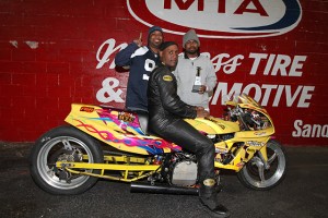 Gadson’s win came in arguably the most competitive of all pro classes, DME Racing Real Street. He qualified fifth, well behind multi-time champ Jeremy Teasley’s 7.78, run on one of Roger Starrette’s nitrous Kawasaki ZX14s. But getting quicker as raceday rolled on, Gadson was able to drive around Teasley in the semifinals aboard his own turbocharged 2012 Kawasaki ZX14-R.