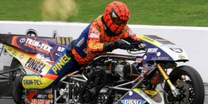 At McBride’s first stop, Norwalk’s Night Under Fire, an event that includes drag racing legend John Force and draws nearly 40,000 spectators, Spiderman will attempt to record the renowned event’s first ever five-second motorcycle pass.