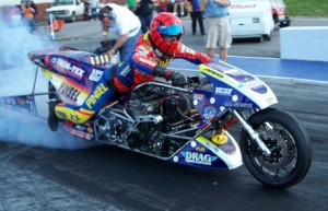 McBride has collected two wins on the season. The first came at the AMA Dragbike Bikeweek Nationals from Valdosta, Ga, in March where McBride established a new motorcycle world record with a blast of 5.79. At the subsequent race in Atlanta, Ga, McBride opted not to compete due to what he felt where unsafe track conditions. At the Spring Nationals from Memphis, Tenn. May 3-4, McBride scored his second victory of the season when he defeated Tom Perry with a 5.83 to Perry’s 10.16.