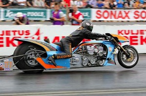 British rider Ian King and his Gulf Oil Dragracing – Grand Prix Originals Top Fuel Bike team returned to the Alastaro Motorpark in Finland following their strong showing at the previous round in Sweden intent on extending their points lead in the European Championship.