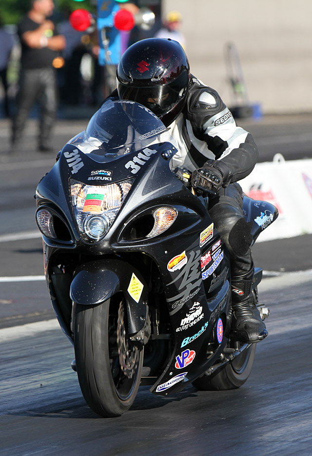 McIntosh Machine & Fabrication Pro Street features the world’s quickest street legal motorcycles and ballsiest riders—Frankie Stotz and his turbocharged Honda CBR1000RR, champion Doug Gall and Columbus Dunigan Pro Street Shootout winner Gabe Frederick with their side-mount turbo Suzuki Hayabusas, and the traditional turbo ‘Busas of Bud Yoder and Jeremy Teasley. Guys like Ryan Hable, Jason Angela, Rudy Sanzottera and John Chant are working overtime to catch the frontrunners.