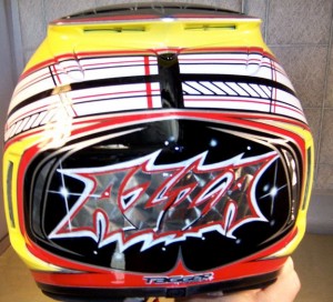 Perhaps nothing at a motorcycle race is more eye-catching and noticeable than a one-of-a-kind, vibrant and unforgettable custom painted helmet.